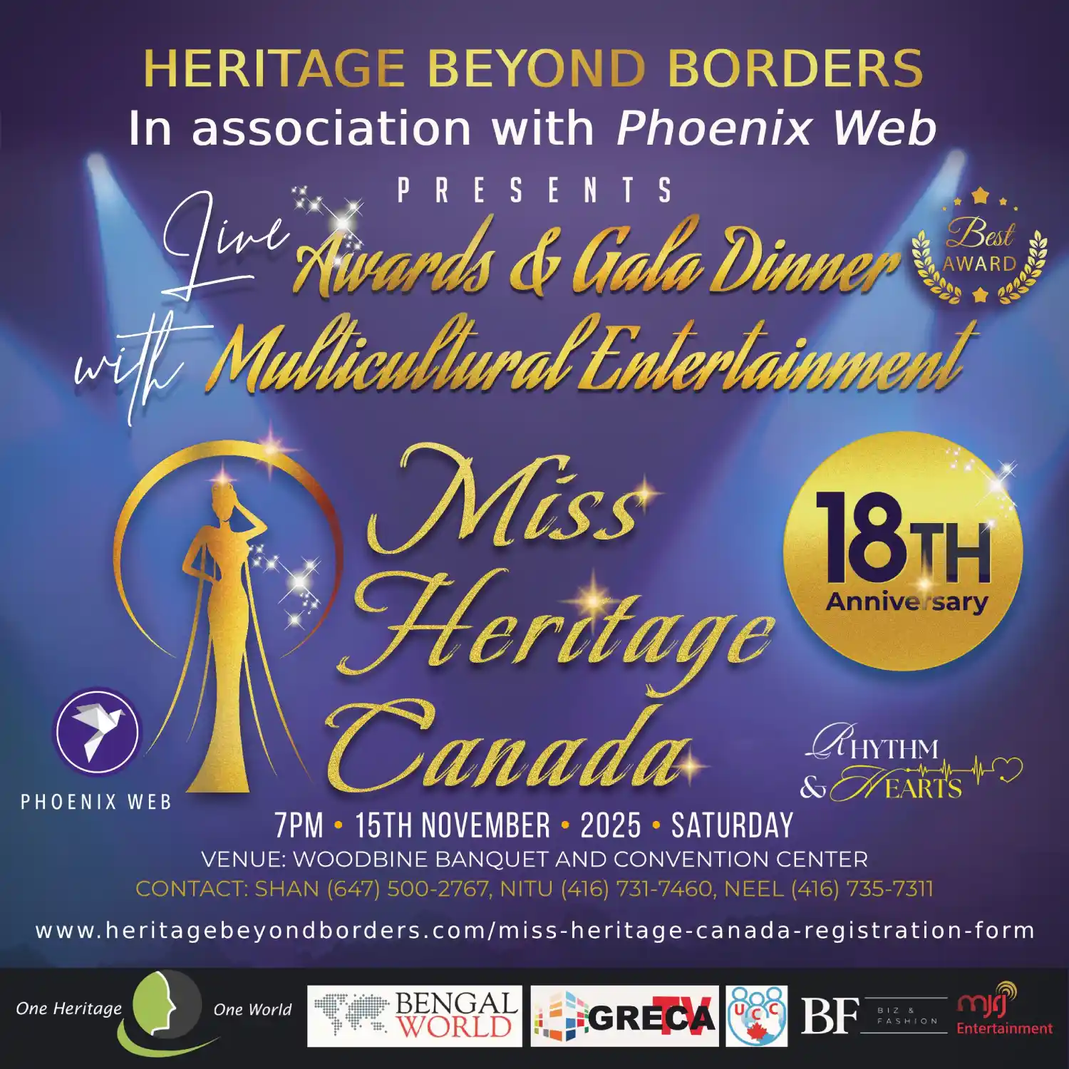 Home Miss Heritage Canada Registration Form – 2025 Miss Heritage Canada Registration Form – 2025 HBB presents 18th Anniversary Annual Awards and Gala Dinner with live Multicultural Performance 2025. Personal InformationFill up the fields below with your personal informationFirst Name *Middle NameLast Name *Date of Birth (DD/MM/YYYY) *Country *Country of Residence *Physical AttributesFill up the fields belowHeight *FeetandInchWeight (KG) *Contact DetailsFill up the fields below with your contact detailsMobile Number *Email Address *Occupation *Education Degree *Name two HobbiesDescribe yourself in 100 words *Picture Specification (To be Attached)Upload your pictures as mentionedOne Close-up *Choose FileNo file chosenDelete uploaded fileMax file size 5mb, and file type: jpg, jpeg, gif, pngOne Full Length *Choose FileNo file chosenDelete uploaded fileMax file size 5mb, and file type: jpg, jpeg, gif, pngPayment DetailsPlease make payment ($40) to complete the registrationSelect Payment method *e-TransferCredit / Debit Carde-Transfer details is as below ....e-Transfer email Id: heritagebeyondborders@hotmail.comThen upload e-Transfer Screenshot below. For help call @ +1 (416) 735-7311Only e-Tranfer payment option is available right nowe-Transfer email Id: heritagebeyondborders@hotmail.comThen upload e-Transfer Screenshot below. For help call @ +1 (416) 735-7311Upload e-Transfer Screenshot *Choose FileNo file chosenDelete uploaded fileFile Type: jpg, jpeg, png, gif, pdfCredit / Debit Card *You are paying $40Billing Address *Accept all Terms and ConditionsSelect the check box to see all Terms and Conditions belowRequirements:Applicant must be 18 years+ and reside in Canada in order to compete in Miss Heritage Canada.Applicant understands that she must uphold a pleasant, professional and friendly demeanor at all times while representing her culture and are required to submit a brief synopsis about them and their pictures one close up and full length to neelnanda@hotmail.com. The main emphasis is how well the applicants carry themselves and represent their cultural heritage and beauty before the audience and judges. Must be in good standing in their community. Must have pleasing personality. Must be cooperative. The Contestants have to follow the schedule and participate in the rehearsal for the event (2 rehearsals).Applicant understands that the judges' decisions and scoring are final and will not be changed. All participants would receive a certificate of appreciation for their participation Terms and Conditions: The applicant must agree to abide by all rules by the Organizers The applicant will participate in a disciplined and diligent manner throughout as per schedule given. The Organizers are not responsible for any loss or physical injury that occur to the applicant on account of their participation in the event. The applicant will participate at her own risk and can have no claim against Heritage Beyond Borders and its organizers in any regard. Incorrect information will result in disqualification, whether discovered prior to, during or after participation. The decision of the judges and organizers are final in all cases. In the event of any dispute, the judges and organizers decisions are final and binding on the applicant. Persons with good health and positive attributes towards life in general are ideal candidates to participate. The applicant does not have any criminal or civil cases against her.The Organizers are not responsible for non-completion / non-occurrence of the event.I acknowledge that I have read and agree to the above Terms and Conditions.Complete Your RegistrationSave as Draft
